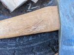 La boîte contenait une carte de visite qui annonçait que Motor City Axe vendait des haches et des hachettes neuves et remises à neuf. J’approuve fortement la remise à neuf de vieilles haches et hachettes. Beaucoup de ces vieux classiques sont aussi bons, voire meilleurs, que les haches et hachettes produites aujourd’hui. À l’époque où de nombreuses personnes utilisaient quotidiennement des haches et des hachettes, elles savaient ce qu’il fallait rechercher dans ces outils. Aujourd’hui, alors que la plupart des gens n’utilisent ces outils qu’en de rares occasions, presque tout ce qui a approximativement la bonne forme et la bonne taille semble être suffisant. Pour beaucoup, l’efficacité et la durabilité ne sont plus des considérations importantes.